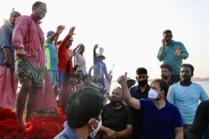 उनके साथ मौजूद कांग्रेस के एक पदाधिकारी ने इस संबंध में बताया कि अपने साथ के मछुआरों से यह जानकारी लेने के बाद कि पानी के अंदर जाल को ठीक से फैला रहे हैं, राहुल गांधी भी समुद्र में उतरने लगे और मछुआरों के पास चले गये.