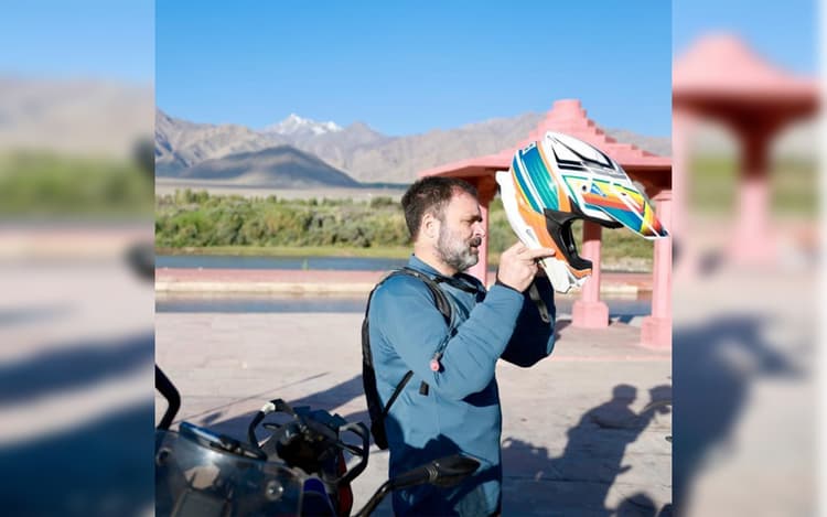 कांग्रेस नेता राहुल गांधी ने सोशल मीडिया पर अपनी कुछ तस्वीरें साझा की है. इन तस्वीरों में वह एक बाइकर की तरह लद्दाख की वादियों में घूमते हुए नजर आए है. इन फोटोज में राहुल गांधी अलग लुक में नजर आ रहे है.