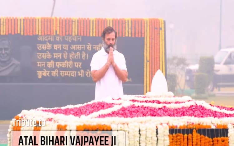 गांधी परिवार का कोई सदस्य पहली बार वाजपेयी की समाधि पर पहुंचायहां चर्चा कर दें कि गांधी परिवार का कोई सदस्य या कांग्रेस का कोई शीर्ष नेता पहली बार वाजपेयी की समाधि पर पहुंचा है. वाजपेयी की 25 दिसंबर को जयंती थी. कांग्रेस के अनुसार, पहले राहुल गांधी का शनिवार शाम ही इन नेताओं की समाधियों पर जाने का कार्यक्रम था, लेकिन पदयात्रा पूर्ण होने में समय लग जाने के कारण इस कार्यक्रम में बदलाव किया गया. ‘भारत जोड़ो यात्रा’ में करीब 3,000 किलोमीटर की दूरी तय करके दिल्ली पहुंचने के बाद राहुल गांधी ने इन प्रमुख नेताओं की समाधियों पर पहुंचकर श्रद्धांजलि अर्पित की.