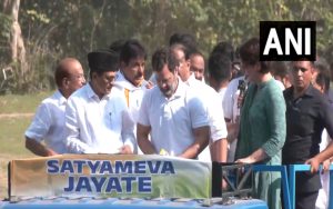 कांग्रेस नेता राहुल गांधी की रोड में समर्थकों की भारी भीड़ नजर आई. सड़क को दोनों ओर कांग्रेस कार्यकर्ता भारी संख्या में मौजूद थे. राहुल गांधी सत्यमेव जयते लिखे एक वाहन में खड़े होकर कार्यकर्ताओं को हाथ हिलाते नजर आये.