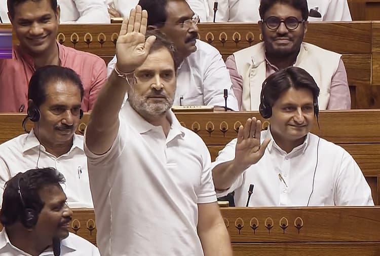 लोकसभा में नेता प्रतिपक्ष राहुल गांधी ने आरोप लगाया कि भारतीय जनता पार्टी हिंसा और नफरत फैला रही है. पिछले 10 सालों में संविधान और भारत की अवधारणा पर सुनियोजित ढंग से हमला किया जा रहा है. उन्होंने राष्ट्रपति के अभिभाषण पर लाए गए धन्यवाद प्रस्ताव पर चर्चा में भाग लेते हुए यह दावा भी किया कि विपक्षी नेताओं को जेल में डाला जा रहा है. उन्होंने कहा कि देश ने मिलकर संविधान की रक्षा की है. अच्छा लग रहा है कि बीजेपी के लोग अब संविधान-संविधान बोल रहे हैं.
