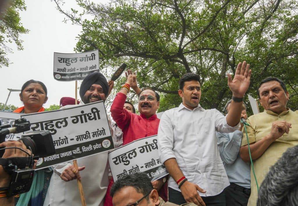 बीजेपी के खिलाफ कांग्रेस सांसद राहुल गांधी की टिप्पणी को लेकर सोमवार को लोकसभा में हंगामा हुआ. इसके बाद सूचना मिली कि दक्षिणपंथी संगठनों के कार्यकर्ता हंगामा कर सकते हैं. इसके बाद मध्य दिल्ली में कांग्रेस नेता के आवास के आसपास सुरक्षा बढ़ा दी गयी. खुफिया सूचना मिली कि तख्तियां या होर्डिंग लेकर राहुल गांधी के आवास के बाहर हंगामा किया जा सकता है.