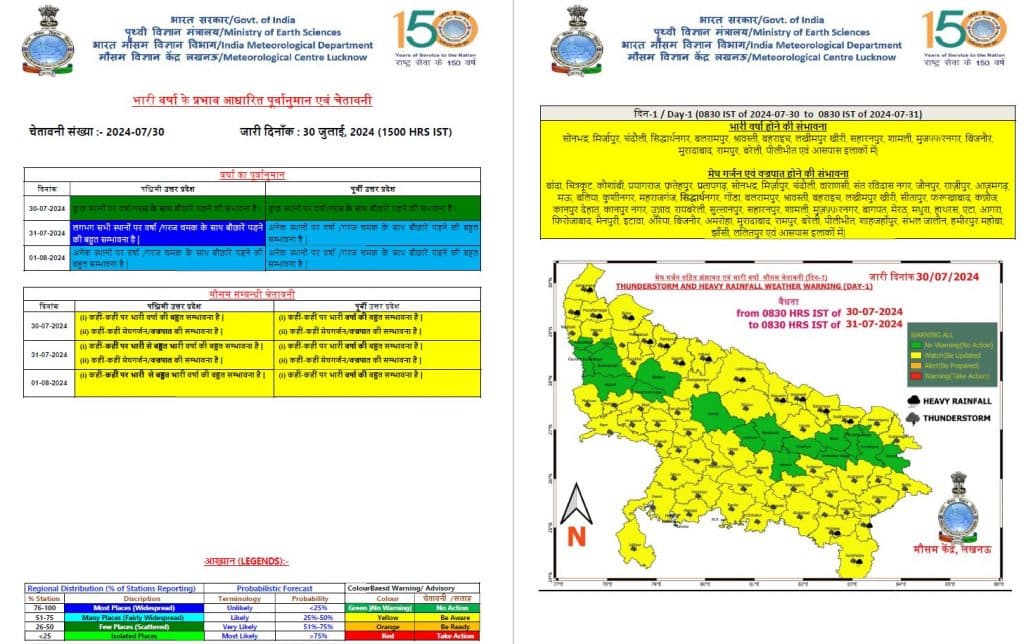 Rain Alert: Uttar Pradesh में इस सप्ताह बारिश के साथ आंधी-तूफान, 10 जिलों में अलर्ट