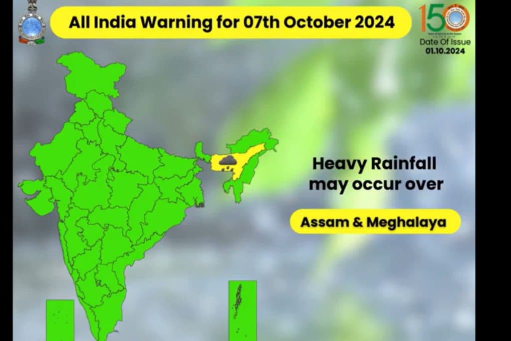 मौसम विभाग के अनुसार 7 अक्टूबर को असम और मेघालय में भारी बारिश होने की संभावना है. देश के अन्य हिस्सों में बारिश की कोई संभावना नहीं है.