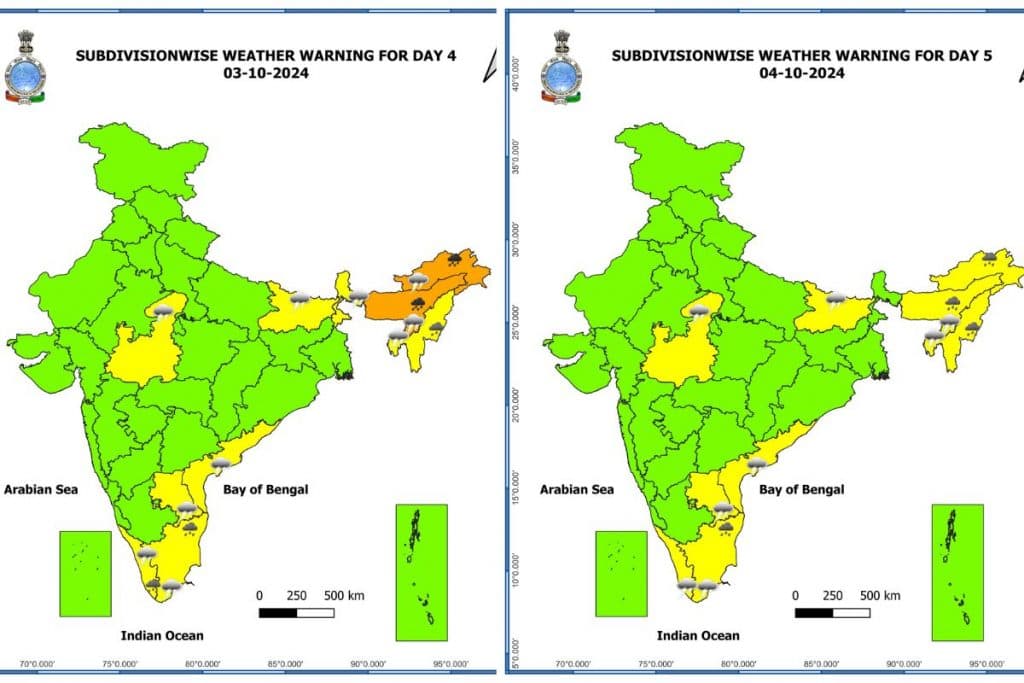 मौसम विभाग के अनुसार 5 अक्टूबर को असम, नगालैंड, मेघालय, मिजोरम, मणिपुर और त्रिपुरा में भारी बारिश होने की संभावना है.