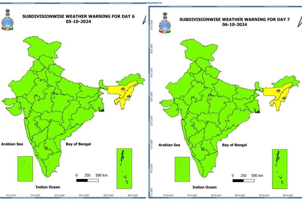मौसम विभाग के अनुसार 6 अक्टूबर को भी असम, नगालैंड, मेघालय, मिजोरम, मणिपुर और त्रिपुरा में भारी बारिश होने की संभावना है.
