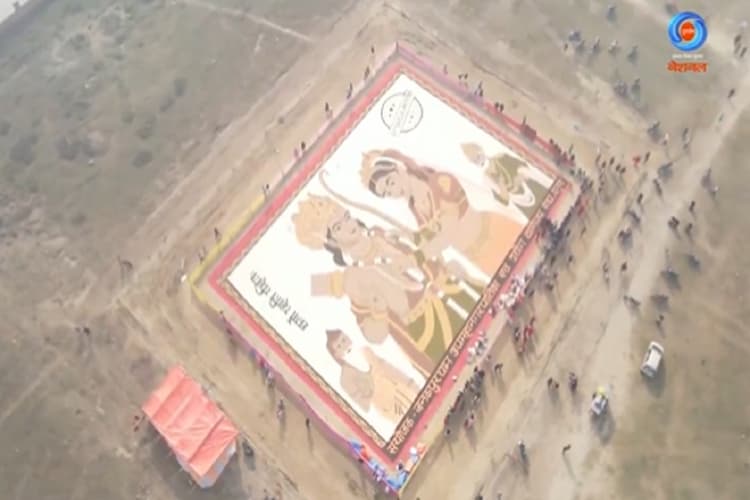 नेपाल के लोग अपनी खुशी व्यक्त करने के लिए कई तरह के आयोजन भी कर रहे हैं. इसी क्रम में दूरदर्शन का वीडियो तेजी से वायरल हो रहा है, जिसमें नेपाली मिलकर राम-सीता की तस्वीर बना रहे हैं. यह तस्वीर रंगोली के रूप में जमीन पर बनाई जा रही है, जिसमें कई तरह के रंगों और और सामग्रियों का प्रयोग किया जा रहा है. इस रंगोली को बनाने के में कई कलाकार जुटे हैं और वे बेहद खूबसूरती के साथ अपने काम को अंजाम दे रहे हैं.