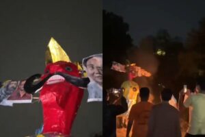 जेएनयू में रावण दहन के दौरान विवाद, पुतले पर उमर खालिद और शरजील की फोटो लगाने पर बवाल