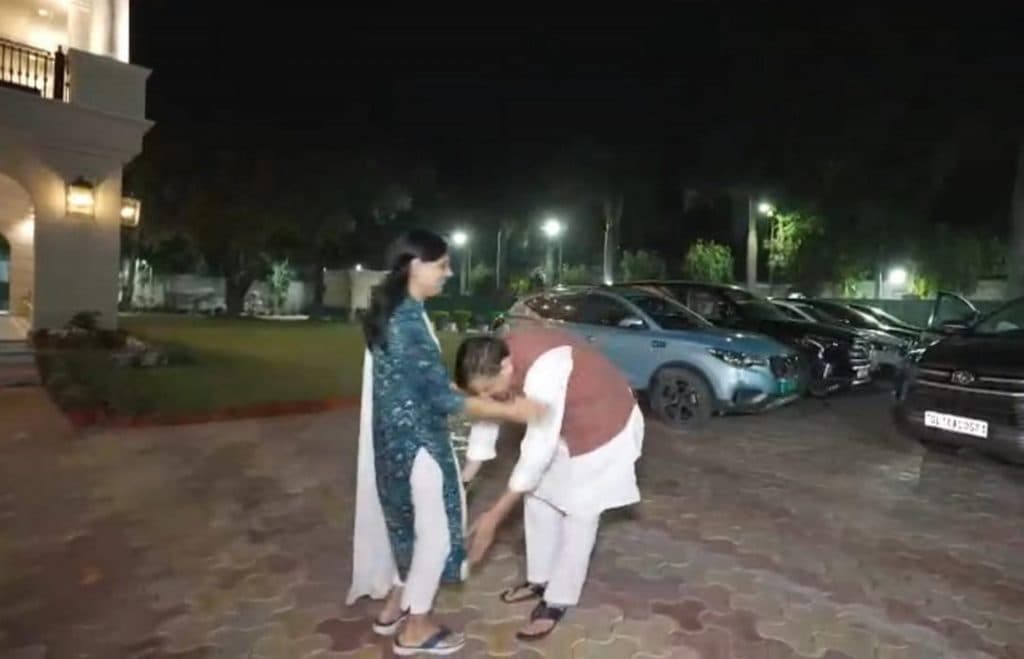 सुनीता केजरीवाल के पैर संजय सिंह ने छुए