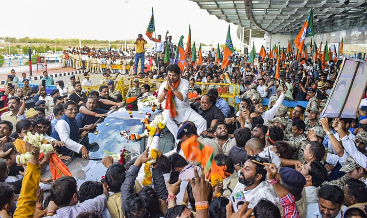 मध्य प्रदेश पहुंचने के बाद बीजेपी के कार्यकर्ताओं ने फूल मालाओं और ढोल नगाड़ों के साथ उनका स्वागत किया. जैसे ही वो वहां पहुंचे कार्यकर्ताओं ने भारत माता की जय-जयकार करने लगे.