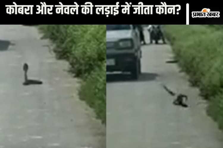 मीडिया रिपोर्ट के अनुसार, यह घटना उत्तर प्रदेश के औरैया जिले की है1 वीडियो में देखा जा सकता है कि एक काला कोबरा फन फैलाकर खड़ा है और अपने दुश्मन पर हमला करने के लिए तैयार है. तभी एक निडर नेवला बहुत तेजी से उस पर झपटता है. कोबरा उसे मारने और खुद को बचाने की कोशिश करता है, लेकिन नेवले की फुर्ती और चालाकी के आगे वह टिक नहीं पाता. नेवला बेहद तेजी से कोबरा के खतरनाक हमलों से बचता है और फिर एक सीधा हमला कोबरा के फन पर करता है. इसके बाद कोबरा हार मान लेता है. नेवला सांप को खींचते हुए सड़क किनारे खेतों की ओर ले जाता है.