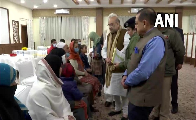 Srinagar: Union Home Minister Amit Shah meets families of martyrs and civilians killed this month in spate of terrorist attacks in J&K pic.twitter.com/4Zi2rv3LDM