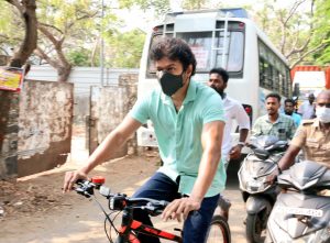 #Vijay arrives in cycle to cast his vote #TamilNaduElections pic.twitter.com/iKY4bkIqA8
