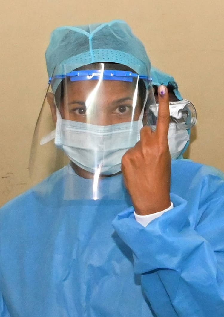 कनिमोझी एबुलेंस मे मतदान केंद्र तक आयीं थी. चुनाव आयोग ने यह कहा था कि कोई कोरोना पाॅजिटिव अगर मतदान करना चाहे तो वह पीपीई पहनकर आ सकता है.