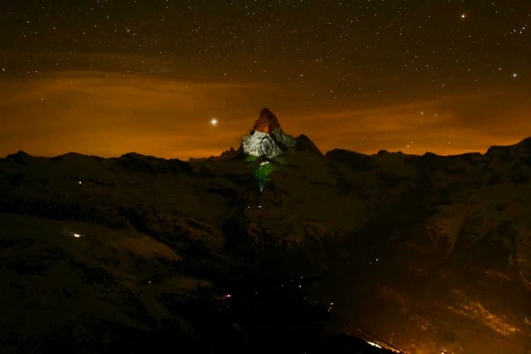 कोरोना के कारण आज पूरी दुनिया खौफ के साये में जी रही है इसी खौफ को कम और उम्मीद की रोशनी को जगाने के लिए स्विट्जरलैंड के मैटरहॉर्न पर्वत को लाइट की मदद से भारत का नक्शा बनाया गया है, 14,690 फीट के इस पर्वत पर रोशनी से बना तिरंगा की खूबसूरती का नजारा देखने लायक है. इस काम को अंजाम दिया है स्विस की स्विस लाइट आर्टिस्ट जेरी जेरी हॉफसिट्टर.