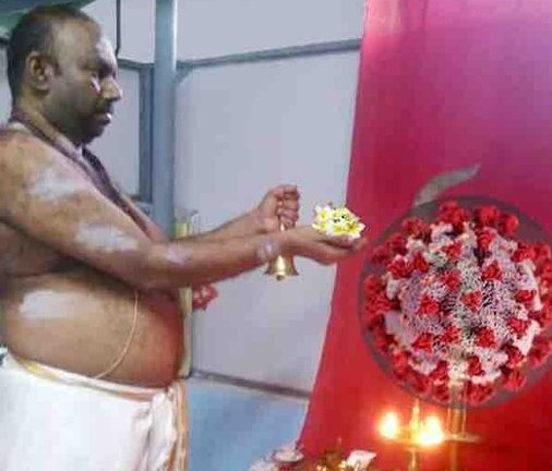तस्वीरों में यहां कडक्कल में अनिलान के घर में पूजा एक बड़े से कमरे में दुनियाभर में लाखों और भारत में तीन लाख से अधिक लोगों को संक्रमित कर चुके विषाणु ‘सार्स सीओवी2′ की थर्माकोल से बनी प्रतिकृति दिखाई दे रही है जो लाल रंग की है. उन्होंने कहा, ‘‘मैं देवी के तौर पर कोरोना वायरस की पूजा कर रहा हूं और स्वास्थ्य पेशेवरों, पुलिसकर्मियों और वैज्ञानिकों, दमकलकर्मियों और मीडिया कर्मियों और इस विषाणु के खिलाफ लड़ाई में जुटे अन्य लोगों के लिए रोज पूजा कर रहा हूं. ”