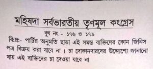 दरअसल, पश्चिमी मेदिनीपुर जिले के केशपुर गांव के बूथ संख्या 176 और 179 में टीएमसी की तरफ से बीजेपी के 18 कार्यकर्ताओं को कोई सामान नहीं बेचने का तुगलकी फरमान सुनाया गया है. टीएमसी की लोकल यूनिट महिषादल तृणमूल कांग्रेस ने बाकायदा पर्चा जारी करके कई जगह पर चिपकाया है. इसमें जिक्र है कि बिना उनकी सहमति के बीजेपी के कार्यकर्ताओं को कोई सामान नहीं दें. अगर इस आदेश का पालन नहीं किया गया तो कठोर कार्रवाई की जाएगी.