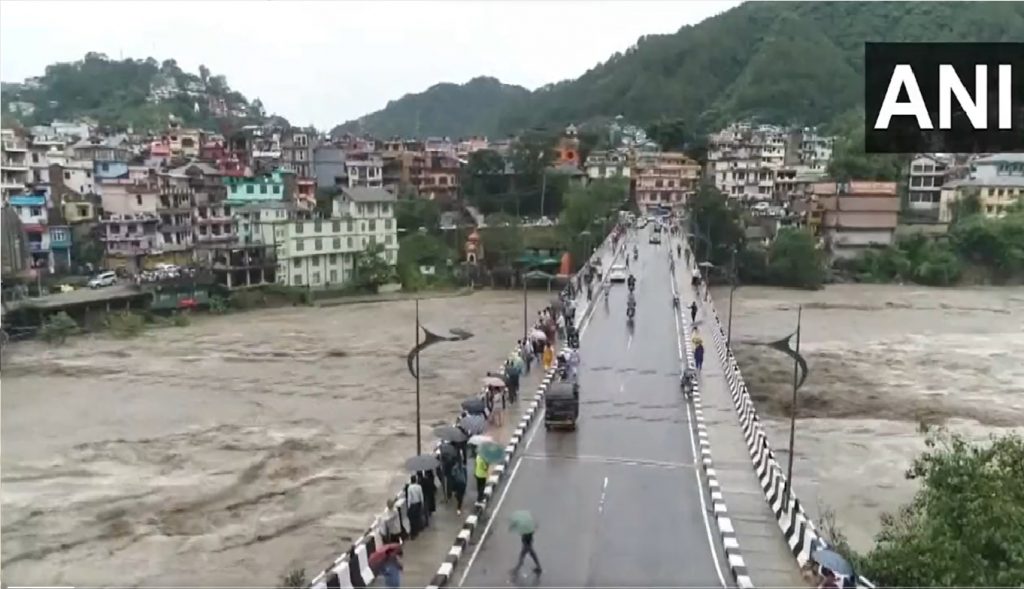 #WATCH | Flooded river Beas continues to flow in full fury in Himachal Pradesh's Mandi pic.twitter.com/r8ghqL1zEW
