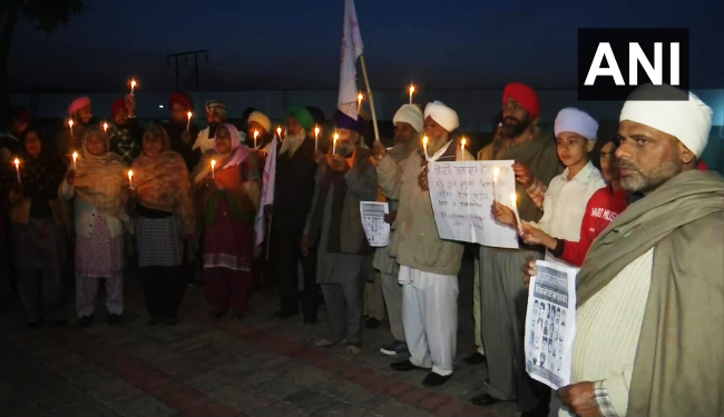 पंजाब के अमृतसर में रविवार की देर शाम किसान मजदूर संघर्ष समिति के सदस्यों ने दिल्ली में चल रहे किसान आंदोलन के दौरान जान गंवानेवालों को श्रद्धांजलि देने के लिए कैंडललाइट मार्च निकाल कर श्रद्धांजलि दी.