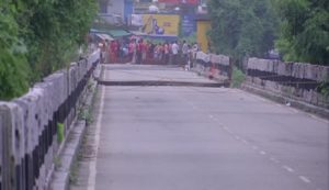 एसडीआरएफ के इंस्पेक्टर हरक सिंह राणा ने बताया कि अब तक किसी चीज का नुकसान नहीं हुआ है. मौके पर एसडीआरएफ की टीम और पुलिस प्रशासन के लोग मौजूद हैं. पुलिस ने पुल पर पूरी तरह से आवाजाही को बंद करा दिया है. पुल ढहने से राहगीरों में अफरा तफरी का माहौल है. बताया जा रहा है कि पुल के दोनों ओर वाहनों की लंबी कतार लगी है. वहीं, पुलिस और प्रशासन की टीम ने पुल के दोनों ओर से लोगों को हटवा दिया है.