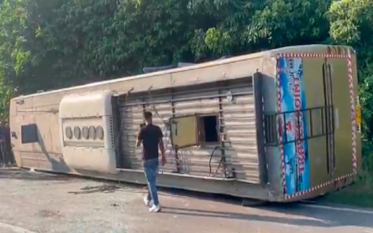अधिकारियों ने जानकारी दी और बताया कि बस वैष्णो देवी की तीर्थयात्रा के आधार शिविर कटरा से दिल्ली जा रही थी. अधिकारियों ने कहा कि बस चालक ने वाहन पर नियंत्रण खो दिया और कडमाल में एक अन्य बस को टक्कर मारने के बाद यह पलट गई. इस घटना में उत्तर प्रदेश (उप्र) निवासी शुभम कुमार (5) नामक बच्चे की मौत हो गई. उन्होंने बताया कि चार महिलाओं और तीन बच्चों सहित 16 यात्री घायल हो गये और उन्हें पास के एक अस्पताल ले जाया गया.