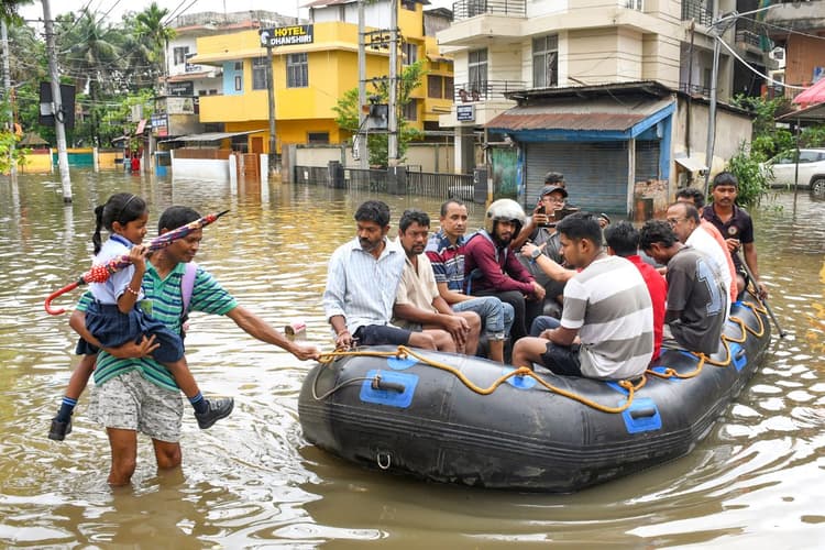 Very Heavy Rain: असम की राजधानी गुवाहाटी में भारी बारिश के कारण कई सड़कों और रिहायशी इलाकों में जलभराव हो गया जिससे यातायात बाधित हुआ और लोगों को भारी परेशानी का सामना करना पड़ रहा है. शहर के कुछ इलाकों में लोगों को घुटनों तक पानी में चलते देखा गया जबकि कई इलाकों में पानी का स्तर सीने तक पहुंच गया. चिड़ियाघर रोड, नवीन नगर, हतीगांव, गणेशगुरी, गीता नगर, मालीगांव, हेदायतपुर, गुवाहाटी क्लब, उलुबारी, लाचित नगर, चांदमारी और पंजाबारी इलाकों में जलभराव की स्थिति देखी गई. शहर के कई स्कूलों में परीक्षाएं हो रही थीं, लेकिन परिसर और रास्तों में पानी भर जाने के कारण मंगलवार सुबह स्कूल बंद कर दिये गये। अधिकांश स्कूल बसें भी नहीं चलीं. कई जगह वाहन पानी में फंस गए. एंबुलेंस भी जगह-जगह रुकी रहीं जिससे मरीजों को समय पर अस्पताल पहुंचाने में दिक्कत आई.