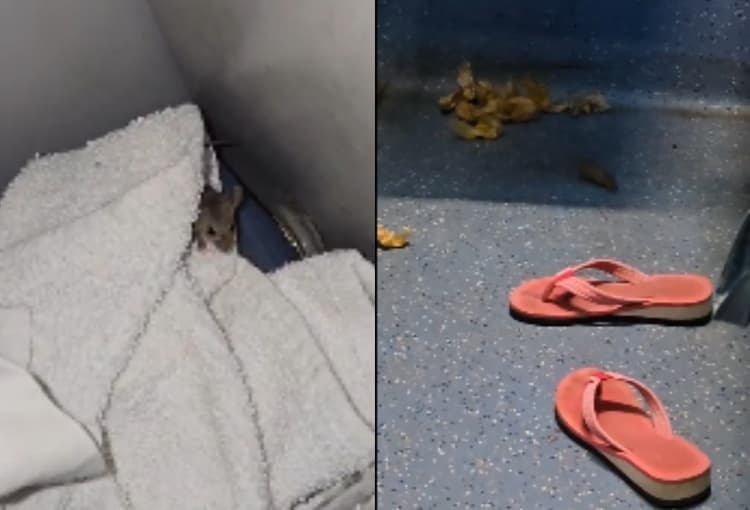 सोशल मीडिया प्लेटफॉर्म पर प्रशांत कुमार नाम के एक शख्स ने वीडियो पोस्ट किया, जिसमें ट्रेन के अंदर चूहे नजर आ रहे हैं। पहले वीडियो में वह चूहा सीट के तैलिए के बीच में दिखाई दे रहा है, जबकि दूसरे वीडियो में वह सीट के नीचे घूमता हुआ नजर आता है. कुछ अन्य वीडियो में चूहा गेट के पास और अन्य जगहों पर भी देखा जा सकता है. प्रशांत कुमार ने बताया कि यह घटना 2AC कोच की है और चूहे की उपस्थिति ने उसकी यात्रा को बहुत परेशान किया. परेशान होकर उन्होंने इन वीडियो को सोशल मीडिया पर पोस्ट किया और रेलवे के संबंधित विभाग और रेल मंत्री को टैग किया, लेकिन उन्हें कोई प्रतिक्रिया नहीं मिली.