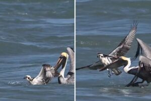 पेलिकन ने जकड़ लिया था ऑस्प्रे पक्षी की गर्दन