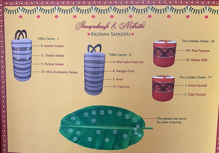 केरल में एक परिवार ने Kalyana Sappadu (शादी का खाना) को अपने रिश्तेदारों के घर में भिजवाया. इसमें हर गेस्ट के लिए केले का पत्ता और टिफिन में 12 डिसेज होते हैं. इसके साथ ही खाना खाने का इंट्रस्कशन भी शामिल होता है. इसमें पारंपरिक संस्कृति का भी पूरा ख्याल रखा जाता है.