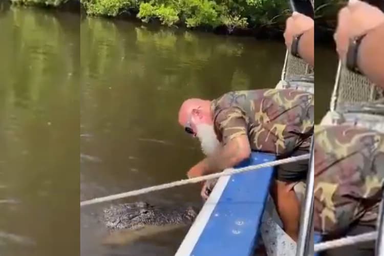 Viral Video: सोशल मीडिया पर एक वीडियो तेजी से वायरल हो रहा है. वीडियो में दिख रहा है कि बड़ी दाढ़ी वाला एक शख्स पानी के अंदर हाथ डालकर घड़ियाल को खाना खिला रहा था. इसी दौरान घड़ियाल ने शख्स का हाथ पकड़ लिया, और उसे दबाने लगा. शख्स के चेहरे से दर्द साफ झलक रहा था. हालांकि उस शख्स ने तेज गति से अपना हाथ वापस खींच लिया. इस कारण वो गहरे चोट से बच गया. उसकी जान को भी खतरा था.