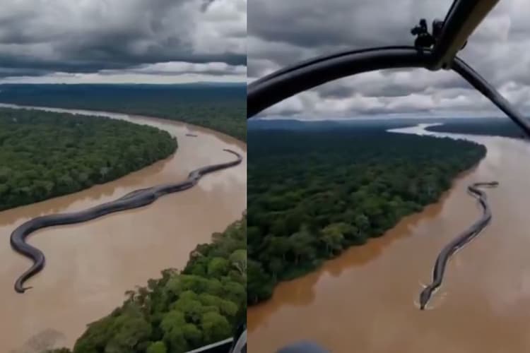 Viral Video: सोशल मीडिया पर एक हैरान कर देने वाला वीडियो वायरल हो रहा है, जिसमें देखा जा रहा है कि एक नदी में एक बहुत ही विशाल सांप तैर रहा है. दावा किया जा रहा है कि यह वीडियो अमेजन के जंगल का है. वीडियो में देखा जा सकता है कि एक आदमी हेलीकॉप्टर में बैठकर आसमान से वीडियो शूट कर रहा है. वीडियो में बताया जा रहा है कि इस विशालकाय सांप का नाम यकुमामा है. यह सांप केवल अमेजन के जंगलों में पाया जाता है और इसकी लंबाई 30 मीटर से भी अधिक है.