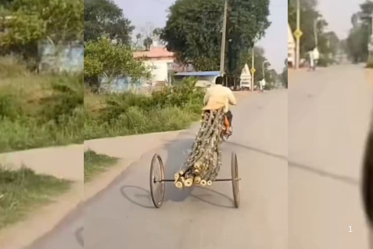 इस बंदे ने ऐसा देसी जुगाड़ लगाया की सोशल मीडिया पर इसके दिमाग की जमकर तारीफ हो रही है. लोगों ने इसके वीडियो को खूब लाइक किया है. जमकर कमेंट आ रहे हैं. वीडियो में दिख रहा है कि बांस को एक जगह से दूसरे जगह ले जाने के लिए इसके क्या दिमाग लगाया है. बंदे ने एक अतिरिक्त व्हील को लेकर कई सारे बांस को अपनी मोटरसाइकिल में ऐसे फिट किया है कि उसे लंबे और भारी बांस को ले जाने में जरा भी परेशानी नहीं हो रही है.