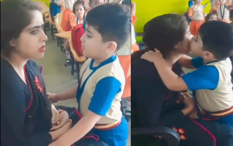 इन दिनों सोशल मीडिया पर एक वीडियो तेजी से वायरल हो रहा है. वीडियो में एक नन्हा बच्चा अपनी टीचर से किसी गलती पर माफी मांगता दिख रहा है. वहीं, टीचर के नहीं मानने पर बच्चा उन्हें किस करता है. यह वायरल वीडियो सोशल मीडिया पर अब काफी पसंद किया जा रहा है, जिसे देख लोग बच्चे की मासूमियत और टीचर के नखरे पर प्रतिक्रिया दे रहे हैं. हालांकि वीडियो कहा का है अबतक स्पष्ट नहीं हो सका है.