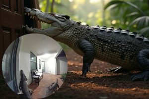 घर में लगे सीसीटीवी फुटेज में साफ दिख रहा है कि घर के बाहर वाले कमरे में दो मगरमच्छ घूम रहे है. दोनों घर के अंदर दाखिल होने की कोशिश कर रहे हैं. वीडियो देखकर घर के अंदर मौजूद लोगों की घिग्घी बंध गई. मगरमच्छ की आहट हुई तो घर के लोगों ने डोरबेल कैमरे से देखने की कोशिश करी को कौन आया है. लेकिन, जब कैमरा की फुटेज चेक की गई तो आंखें फटी की फटी रह गईं. वीडियो में एक 7 से 8 फुट लंबा मगरमच्छ घर के फ्रंट डोर पर खड़ा था, पास ही दूसरा मगरमच्छ भी था. उनमें से एक अपने अगले पैरों पर खड़े होकर दरवाजे को धक्का मार रहा था, मानो अंदर घुसने की कोशिश कर रहा हो. मगरमच्छ का मुंह खुला हुआ था और वह शीशे की ओर झांक रहा था, जैसे कोई मेहमान दरवाजा खटखटाकर अंदर आने का इंतजार कर रहा हो.