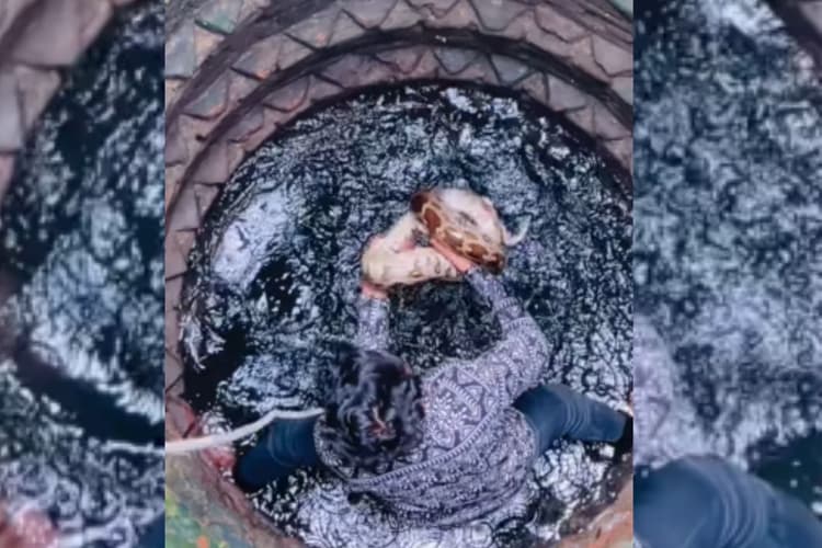 वीडियो में साफ दिख रहा है कि युवक रस्सी के सहारे कुएं में उतर गया. सहारे लेकर वो कुएं में खड़ा हो गया. इसके बाद घात लगाकर युवक ने अजगर का मुंह पकड़ लिया. अपने दूसरे हाथ से युवक ने अजगर का पूंछ पकड़ लिया है. लेकिन, अजगर भी अपनी कुंडली में युवक के हाथों को जकड़ने की कोशिश करता है. यह मंजर रोंगटे खड़े कर देने वाला है. हालांकि युवक को इससे कोई फर्क नहीं पड़ा.