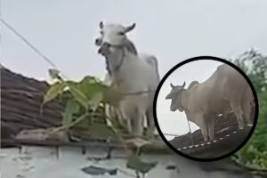 यह घटना वहां मौजूद लोगों और ग्रामीणों ने अपने कैमरे में कैद कर ली, जो अब इंटरनेट पर तेजी से वायरल हो रही है. वीडियो में बैल घर की छत पर खड़ा नजर आ रहा है. खास बात यह है कि जिस छत पर बैल चढ़ा, वह मिट्टी से बनी थी. आमतौर पर ग्रामीण इलाकों में इस तरह के घर नजर आते हैं. सौभाग्य से ये छत मजबूत थी जिसकी वजह से भारी-भरकम बैल का वजन सह लिया, जिससे कोई बड़ा हादसा होने से टल गया. बाद में ग्रामीणों ने रस्सियों की मदद से बैल को सुरक्षित नीचे उतार लिया. इस घटना के वीडियो पर यूजर लगातार रिएक्शन दे रहे हैं.