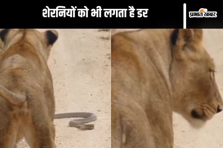 वायरल वीडियो में नजर आ रहा है कि दो शेरनियां जंगल में घूम रही होती हैं, तभी अचानक उनके रास्ते में एक कोबरा सांप आ जाता है. कोबरा को देखते ही शेरनियां डरकर वहीं रुक जाती हैं और आगे बढ़ने की हिम्मत नहीं कर पातीं. कुछ देर तक दोनों उसे घूरती रहती हैं, फिर कोबरा एक बिल में चला जाता है. उसके जाने के बाद शेरनियां आगे बढ़ती हैं, तभी वहां एक छिपकली नजर आती है, जिसे कोबरा शिकार कर रहा था. छिपकली को देखकर शेरनियां फिर डर जाती हैं. दोनों यह सोचकर कि कोबरा फिर लौट आया है. शेरनियां छिपकली को काफी देर तक घूरती रहती है.