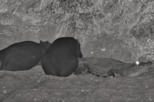 हिप्पो ने बनाया मगरमच्छ को तकिया