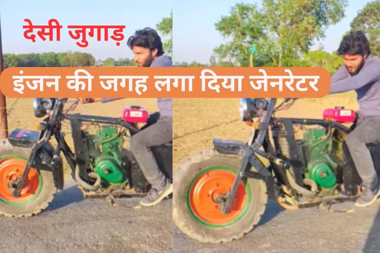 Viral Video: सोशल मीडिया पर वायरल हो रहे वीडियो में लड़का अपनी मॉडिफाइड बाइक में बैठा दिख रहा है. लेकिन बाइक को आप गौर से देखेंगे, तो उसमें छोटी इंजन के जगह पर विशाल इंजन नजर आ रहा होगा. दरअसल लड़के ने देसी जोगाड़ से बाइक में इंजन की जगह पर जेनरेटर लगा दिया है. यही नहीं बंदे ने इंजन के साथ बाइक के पहिए को भी बदल डाला है. बाइक के पहियों की हटाकर ट्रैक्टर के पहिए को लगा दिया. जिससे साधारण बाइक हैवी सुपर बाइक में बदल गया. वीडियो में लड़का अपने मॉडिफाइड सुपर बाइक को खलिहान में दौड़ाता दिख रहा है. सुपर बाइक और उससे लूक को देखकर हर कोई दंग रह गया है.