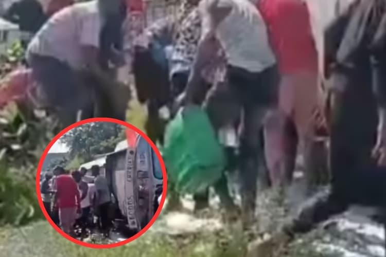 वायरल वीडियो में देखा जा सकता है कि गांव के रास्ते पर डीजल का एक टैंकर पलट गया है. इसके आसपास बड़ी संख्या में लोग बाल्टियां लेकर पहुंचे हैं और बिना किसी डर के डीजल भरते दिख रहे हैं. हर कोई ज्यादा से ज्यादा डीजल ले जाने की जल्दी में नजर आ रहा है. इस दौरान वीडियो में एक शख्स की आवाज भी सुनाई देती है, जो लोगों को रोकते हुए कहता है – “ऐ, रुको रुको, हटाओ इधर…”