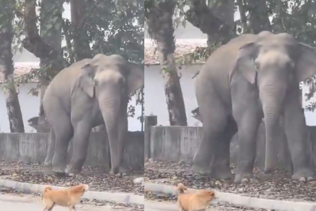हाथी ने डॉगी को भौंकने पर सिखाया जबरदस्त सबक, वायरल वीडियो में देखें मजेदार नजारा