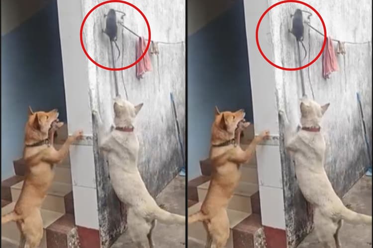 जब बहुत देर बाद भी चूहा नीचे नहीं उतरता है, तो कुत्ते कूद-कूद कर उसे नीचे खींचने की कोशिश करने लगते हैं. लेकिन ऊंचाई पर होने के कारण कोई भी कुत्ता चूहे तक नहीं पहुंच पाता है. कुत्ते के बच्चे से लेकर बड़े कुत्ते तक इसी जतन में लगे रहते हैं कि किसी तरह आज इस चूहे को पकड़ लें. वहीं चूहा अपनी जान बचाने के लिए उस पतले से स्टिक पर संतुलन बनाए रखने की कोशिश में लगा रहता है. उसे देखकर साफ समझ आता है कि वह बेहद डर गया है. एक छोटी सी चूक और वह सीधा जा कर नीचे गिर सकता है. देखिए इस वीडियो को.