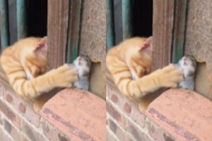 Viral Video: सोशल मीडिया पर एक वीडियो खूब वायरल हो रहा है. इसमें एक बिल्ली और चूहे को आपस में मारपीट करते हुए देखा जा सकता है. वीडियो में नजर आ रहा है कि घर की खिड़की के ऊपर एक बिल्ली बैठी हुई है. वहीं खिड़की के बाहर साइड में एक दरार है जिसके ऊपर चूहा बैठा हुआ है. बिल्ली की नजर जैसे ही उस पर पड़ती है वह उस पर पंजे से हमला करना शुरू कर देती है.