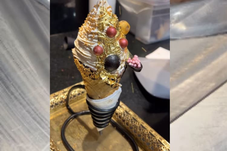 हैदराबाद की इस खास आइसक्रीम की कीमत 12 सौ रुपये बताई जा रही है. सोशल मीडिया पर दावा किया जा रहा है कि यह भारत की सबसे महंगी आइसक्रीम भी है. वीडियो सोशल मीडिया पर खूब वायरल हो रही है. वीडियो में दिख रहा है कि रेस्टोरेंट स्टाफ आइसक्रीम के स्पेशल कोन में ठोस चॉकलेट के टुकड़े, पिघला हुआ चॉकलेट, कुछ नट्स, और चॉकलेट आइसक्रीम डाल रहा है. इसके बाद वो आइसक्रीम पर क्रीम की एक मोटी परत चढ़ा रहा है. सोने की एक परत भी वो आइसक्रीम में लगा रहा है. कई सारे टॉपिंग्स से स्टाफ आइसक्रीम को सजा रहा है. पूरी तरह से बनने के बाद आइसक्रीम काफी खूबसूरत और लजीज दिख रही है.