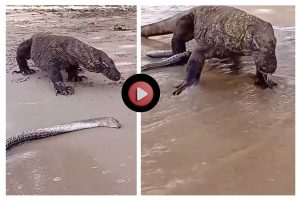 Viral Video: सोशल मीडिया पर एक वीडियो तेजी से वायरल हो रहा है. वीडियो में दिख रहा है कि एक कोमोडो ड्रेगन समुद्र किनारे शिकार की तलाश में घूम रहा है.इसी दौरान उसे एक मरी हुई समुद्री मछली दिखाई देती है. कोमोडो तेजी से उसके पास जाता है. इसी समय पानी की एक लहर आ जाती है और मछली के कोमोडो के पीछे बहकर पहुंच जाती है. कमोडो इधर-उधर शिकार को देखता है और फिर आगे बढ़ जाता है. समुद्र की लहरों ने उसका मोय-मोय कर दिया. यानी शिकार तो मिला, पर उसे खा न सका.
