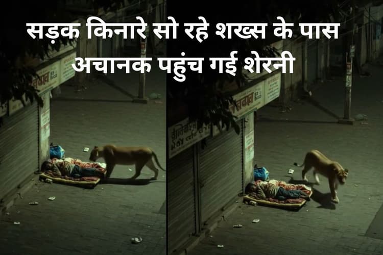 Viral Video: सोशल मीडिया पर वायरल हो रहे वीडियो में आप देख सकते हैं कि एक शख्स सड़क किनारे दरी बिछाकर आराम से चैन की नींद सो रहा है. कुछ ही देर में उसके ठीक बगल से एक शेरनी गुजरती दिखती है. शेरनी उसे बिना देखे आगे निकल जाती है. वीडियो देख रहे लोगों को ऐसा लगा कि बंदे की किस्मत अच्छी थी कि शेरनी ने उसे देखा ही नहीं. लेकिन वीडियो में आप देख सकते हैं कि शेरनी आगे बढ़ती जरूर है, लेकिन फिर पलटकर सो रहे शख्स के पास पहुंच जाती है. शेरनी सो रहे शख्स को देखती, उसे सूंघती है और फिर वापस लौट जाती है. पूरे वीडियो को देखकर लोग हैरान हैं. आखिरी शेरनी उस शख्स को कैसे छोड़ देते हैं.