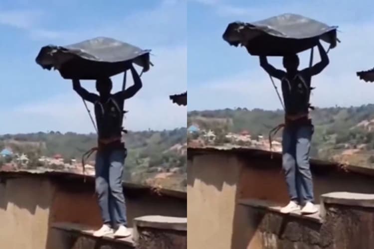Viral Video: सोशल मीडिया पर एक अजीबो-गरीब वीडियो वायरल हो रहा है. इसमें एक व्यक्ति को जुगाड़ू पैराशूट की मदद से पैराग्लाइडिंग करने की कोशिश करते हुए देखा जा सकता है. वीडियो में नजर आ रहा है कि व्यक्ति ने प्लास्टिक और लकड़ियों की मदद से पैराशूट की तरह दिखने वाला एक अनोखा सूट बनाया है. वह उसे पहनकर घर की दीवार पर चढ़ जाता है. उसके दोस्त नीचे खड़े होकर वीडियो बनाते हैं.