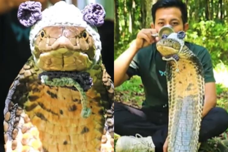 वीडियो में नजर आ रहा है कि व्यक्ति जंगल में बैठा हुआ है. उसके सामने सांप बैठा हुआ है जो कि कैमरे की ओर देख रहा है. व्यक्ति मौके का फायदा उठाकर सांप को टोपी पहना देता है और उसे देखकर मुस्कुराने लगता है. टोपी सांप को इतनी अच्छी तरह से फिट होती है कि लगता है मानो उसी के लिए खासतौर पर साइज मापकर बनाया गया है.