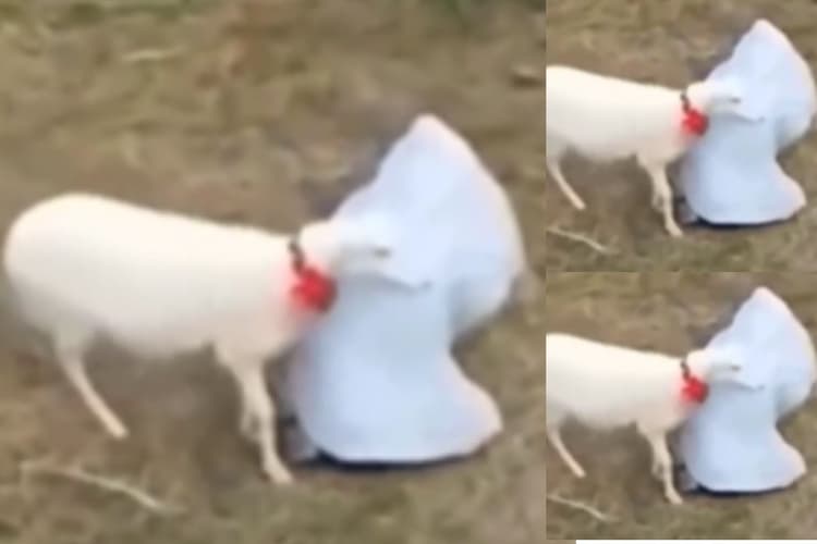 व्यक्ति दौड़ता हुआ आता है और जमीन पर गिरा हुआ सफेद प्लास्टिक का बोरा उठा लेता है. वह तेजी से उस बोरे को पहन कर नीचे बैठ जाता है. अपने आंखों के सामने इस तरह से अचानक आदमी को गायब होते देख कर बकरी कंफ्यूज हो जाती है. वह वहीं बोरे के पास खड़ी हो कर इधर-उधर देखने लगती है.