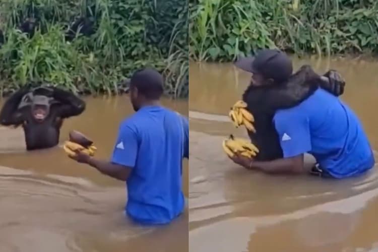 वीडियो में दिख रहा है कि एक शख्स हाथों में कुछ केले लेकर एक चिंपांजी की तरफ बढ़ रहा है. चिंपांजी भी सधे कदमों के साथ उस शख्स की ओर खुशी से बढ़ रहा था. अपने पुराने केयर टेकर को देखकर चिपैंजी से उसे गले लगा लिया. चिपैंजी वर्षों बाद मिलने के बावजूद अपने पुराने केयरटेकर को नहीं भूला था. उपहार स्वरूप चिपैंजी के लिए केले भी लेकर गया था. लेकिन, चिपैंजी ने केले की तरफ देखा तक नहीं, वो तो अपने पुराने केयर टेकर को देखकर फूला नहीं समा रहा था. सोशल मीडिया पर यह वीडियो तेजी से वायरल हो रहा है.